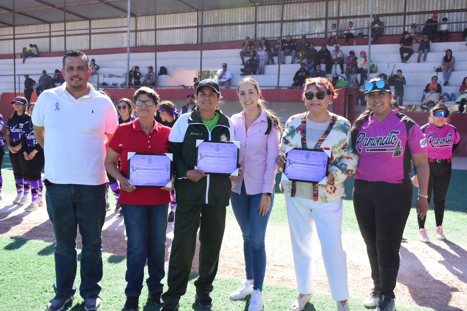La Coordinación Municipal del Deporte, a cargo de Alberto del Real, reconoció a mujeres pioneras del sóftbol durante un torneo de la liga, enmarcado en las actividades del Día Internacional de la Mujer.