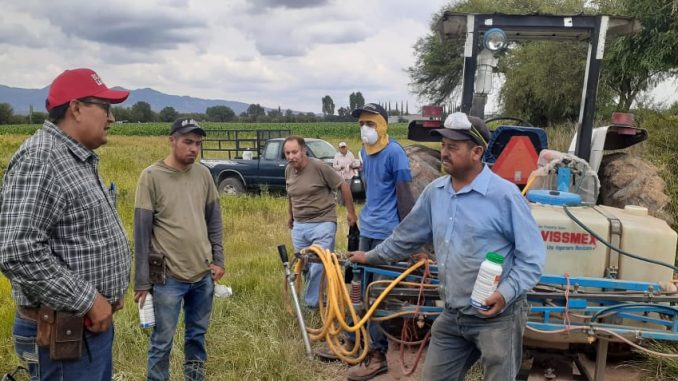 El titular del Departamento de Desarrollo Agropecuario, Rolando Ruíz Vázquez, explicó que estas medidas forman parte de un plan integral que busca una dispersión oportuna y estratégica del insecticida, socializando el problema y capacitando a los agricultores para un uso eficaz del producto.