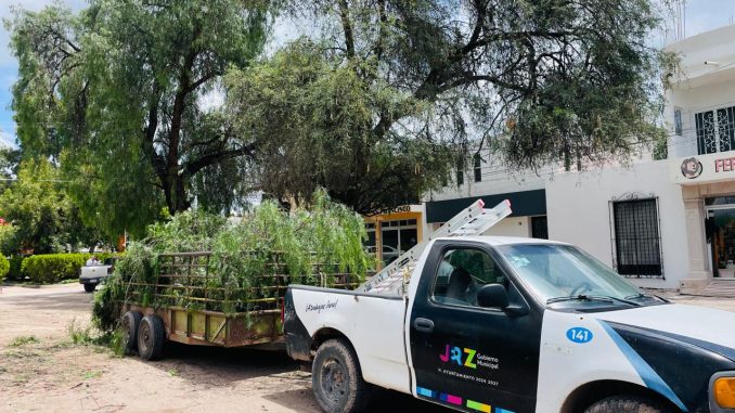 Ante los riesgos que se presentan durante la temporada de lluvias, el Gobierno Municipal que encabeza Rodrigo Ureño, a través de la Dirección de Obras y Servicios Públicos, mantiene una vigilancia constante para retirar árboles secos o en riesgo de caer que puedan provocar algún incidente.
